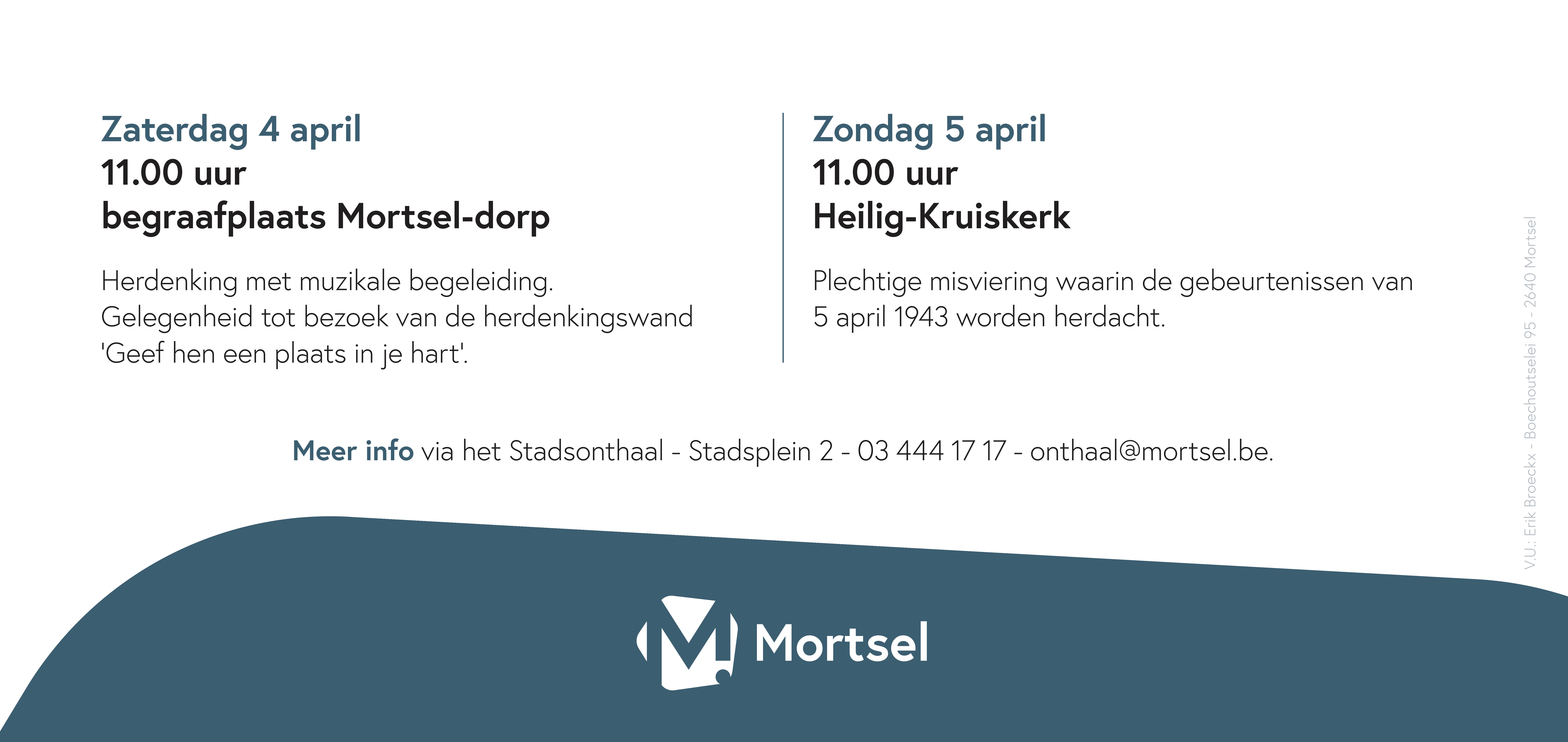 - 4 april, 11.00 begraafplaats Mortsel-Dorp: herdenkingsplechtigheid 77 jaar na het bombardement