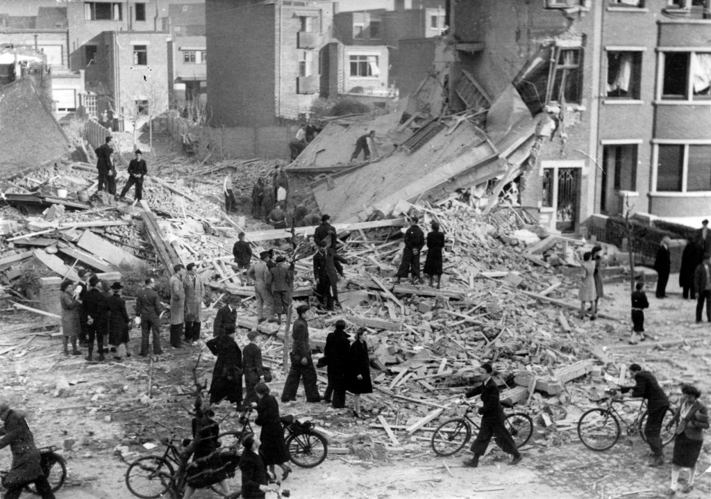‘Een collega van mijn vader woonde in de Guido Gezellelaan. Dat was mijn tweede opdracht: het huis van Renier was met vier andere woningen volledig vernield. De grootouders van Renier lagen onder het puin. Ze werden platgedrukt in de kelder gevonden. Ze waren dood. We hebben er een viertal dagen gewerkt met een schop en truweel. De toestand was zeer gespannen door de talrijke ramptoeristen. De heer Renier bleef dag en nacht op het puin zoeken naar zijn spaarpot. Na een dag en een nacht zoeken, heeft hij die uiteindelijk gevonden. Een koekendoos, waarin een paar duizend frank stak, in die tijd een kapitaal. De familie Renier had alles verloren. Hun enig bezit waren de kleren welke ze droegen. Hier zie je het huis waar die grootouders onder lagen.’